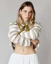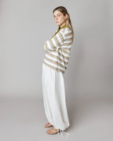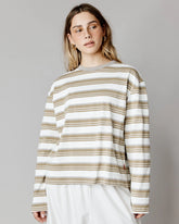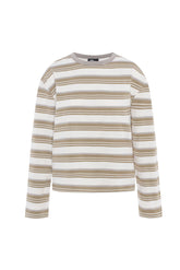 T-shirt à manches longues à rayures beige et crème