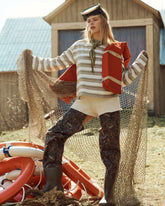 Un chandail à manches longues rayé qui sent les fins de journées au bord de l’eau. Sable chaud, c’est la version plus enveloppante du t-shirt nautique : une coupe inspirée du vintage, confortable, idéale quand le soleil baisse mais que tu n’es pas prête à rentrer.