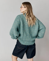 Le pull Boréal se distingue par sa coupe décontractée aux épaules tombantes et ses manches évasées et bouffantes, apportant une belle fluidité à chaque mouvement. Sa maille en laine offre une sensation de confort et de douceur incomparable. C’est le tricot que tu enfiles lorsque tu veux simplement te sentir cozy.